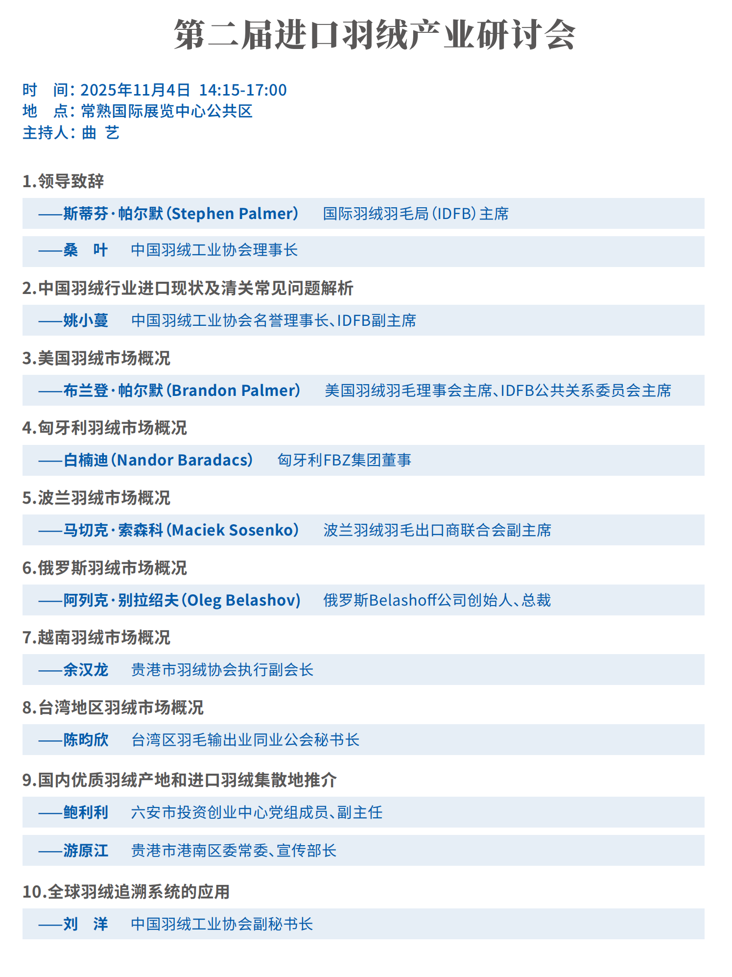 协办单位:常熟市纺织服装协会、六安市羽毛(绒)产业协会