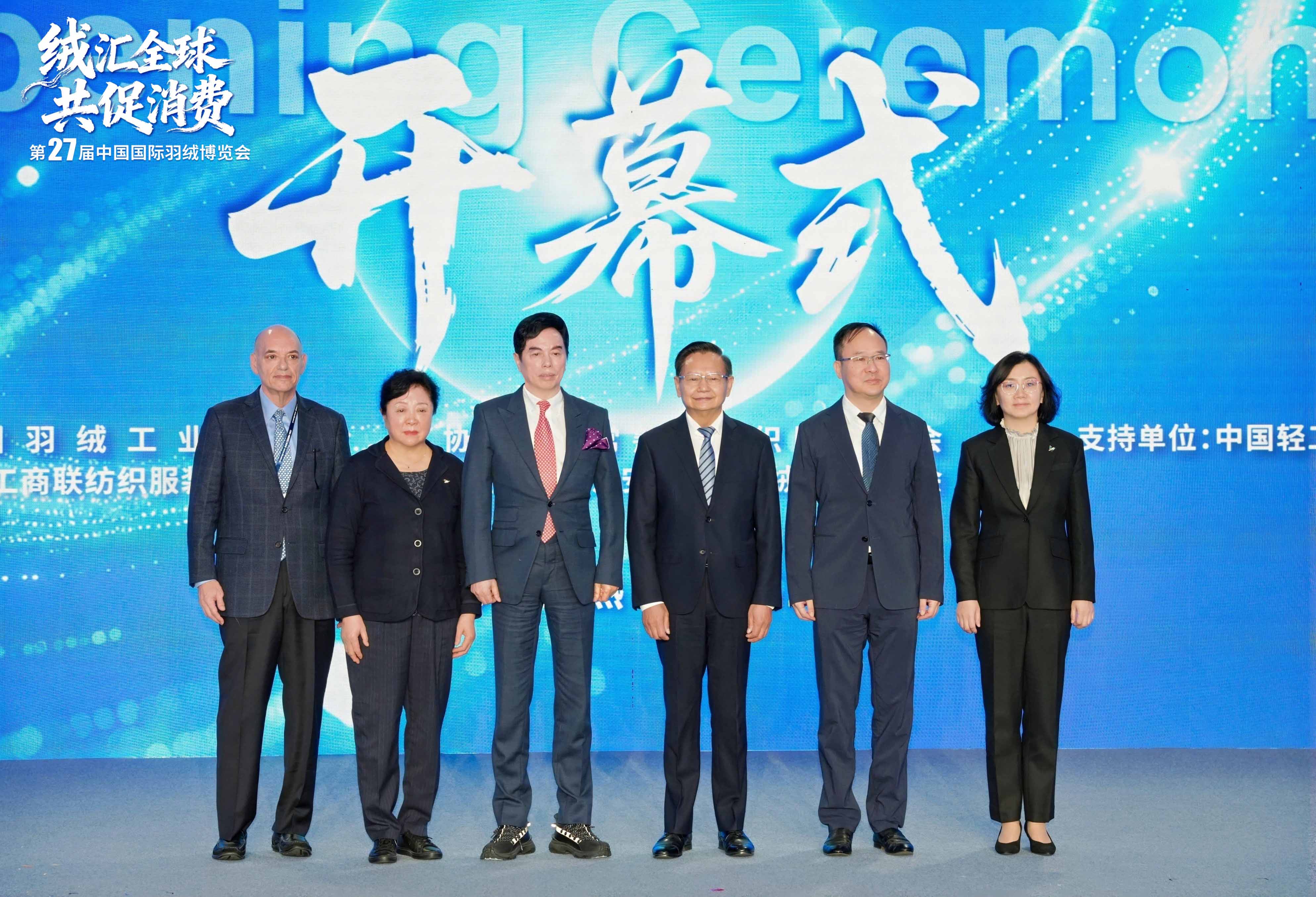 11月4日,第27届中国国际羽绒博览会在常熟国际展览中心隆重开幕。中央编办原副主任,中国轻工业联合会党委书记、会长张崇和出席并宣布展会开幕。常熟市委书记虞伟,中国轻工业联合会执行秘书长、中国羽绒工业协会理事长桑叶,中国羽绒工业协会名誉理事长、国际羽绒羽毛局副主席姚小蔓,全国工商联纺织服装业商会理事长、波司登创始人、董事局主席兼总裁高德康,国际羽绒羽毛局主席斯蒂芬·帕尔默(Stephen Palmer),六安市人民政府副市长李煜,贵港市人民政府副市长农卓松,海宁中国皮革城股份有限公司董事长黄征,以及来自全国各产业集群代表、国际羽绒同仁和中国羽绒工业协会副理事长、会员代表等出席开幕式。