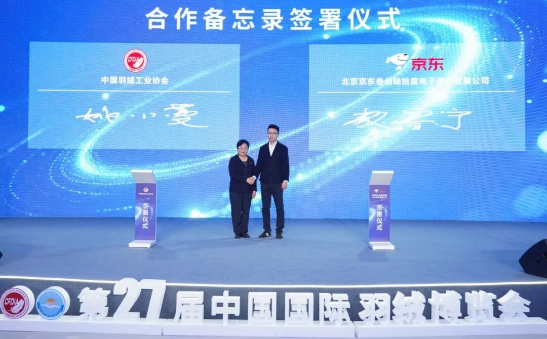 开幕式上,姚小蔓发布《中国羽绒行业质量提升白皮书》,对羽绒行业质量建设成果进行总结,指引行业质量建设工作方向。中国羽绒工业协会还与京东签署合作备忘录,就共推优质羽绒品牌和产品,推动羽绒制品市场健康有序发展。